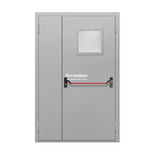 Противопожарная дверь EI 60 ДО-02-EI-60 полуторная остеклённая с квадратным стеклом и антипаникой