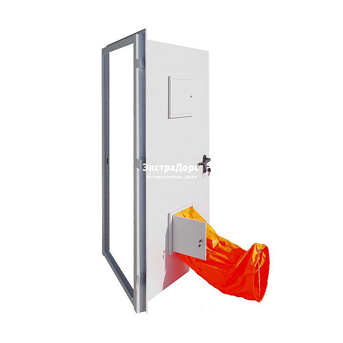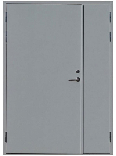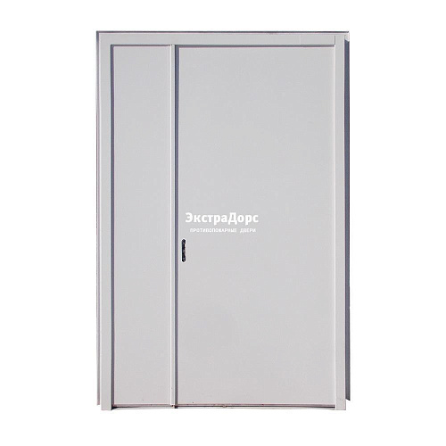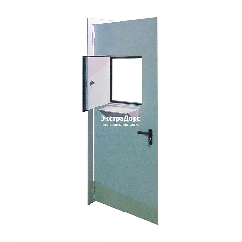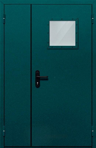 Дверь противопожарная без порога полуторная с квадратным стеклом