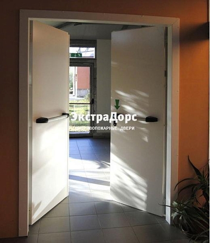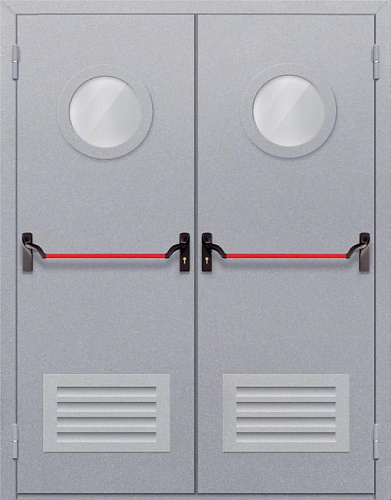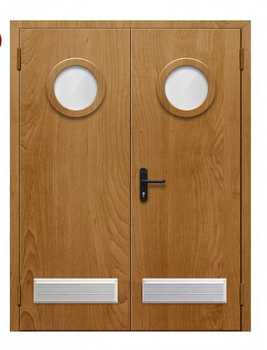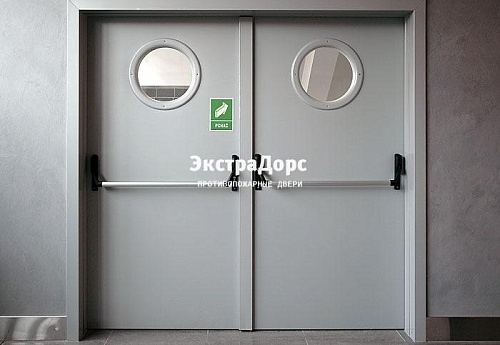 Противопожарная дверь двухстворчатая без порога с иллюминаторами