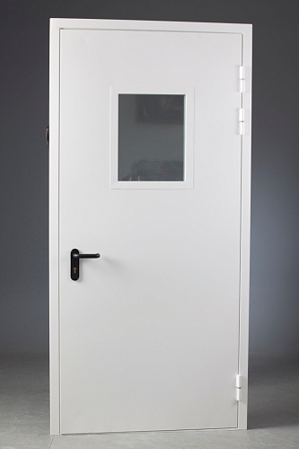 Противопожарная дверь без порога металлическая однопольная с остеклением