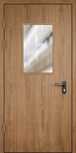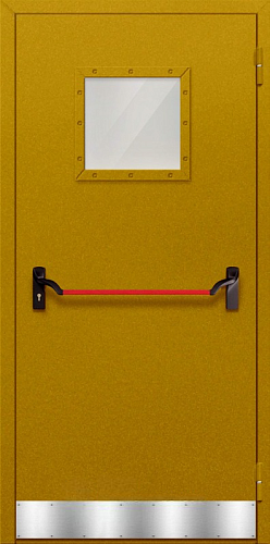 Противопожарная дверь желтая однопольная с иллюминатором без порога