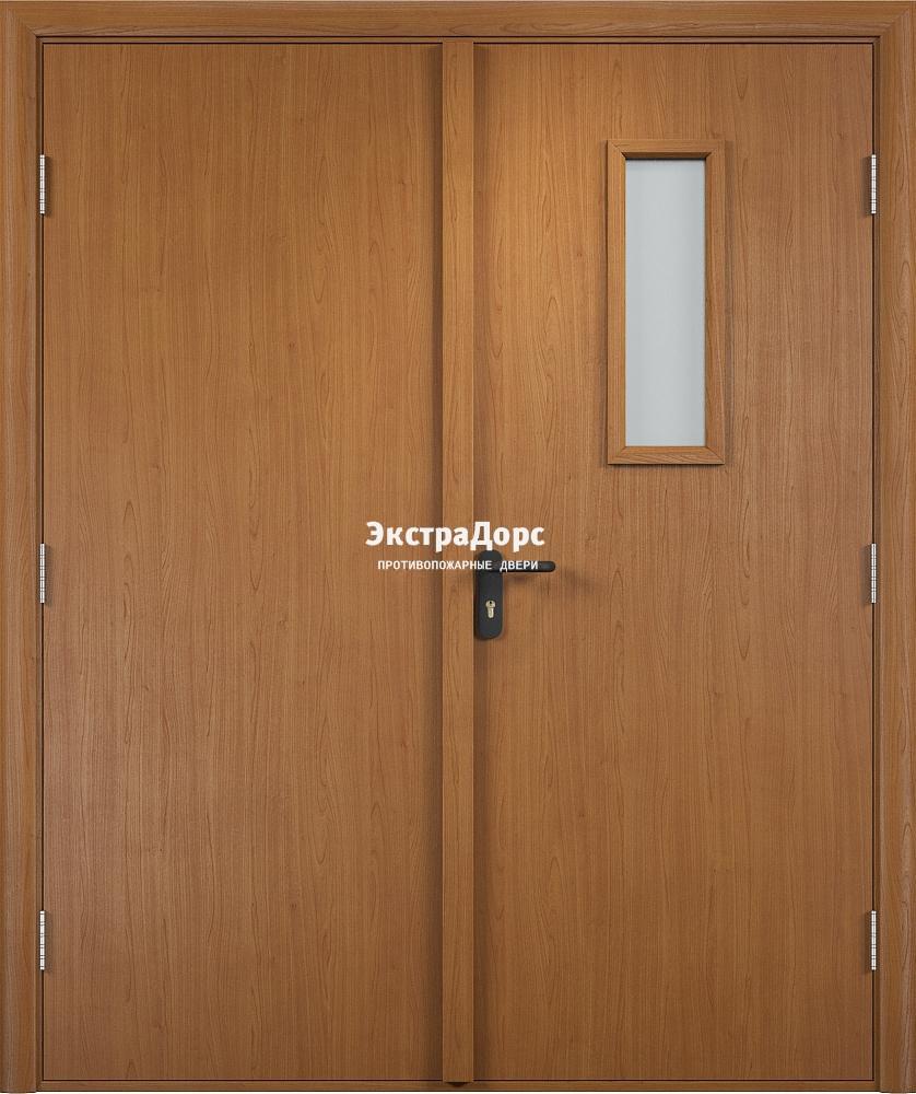 Двупольная противопожарная дверь ДМП-01-30 двухстворчатая со стеклом дуб в Воскресенске
