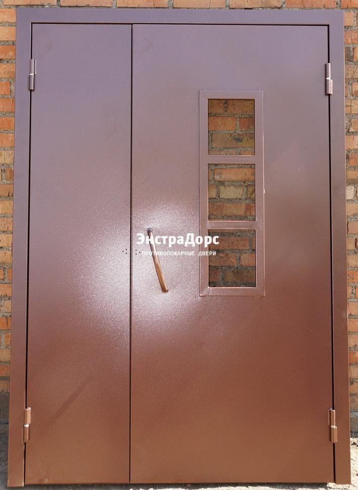Противопожарная дверь двупольная анти-дым со стеклом, порошковая покраска в Воскресенске