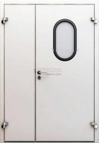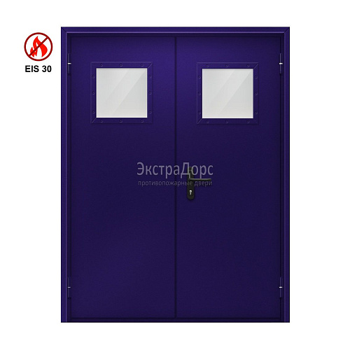Двухстворчатая огнеупорная дверь с порошковым напылением EIW 60 стальная с окном