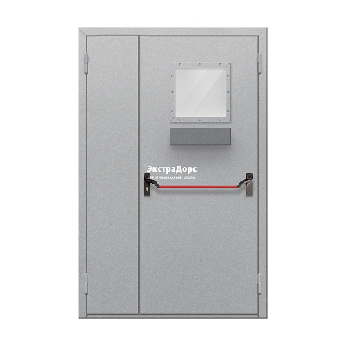 Двупольная противопожарная дверь EI 60 двупольная остеклённая стальная с антипаниками