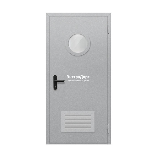 Противопожарная дверь EI 30 ДО-02-EI-30 полуторная остеклённая с иллюминатором и решёткой