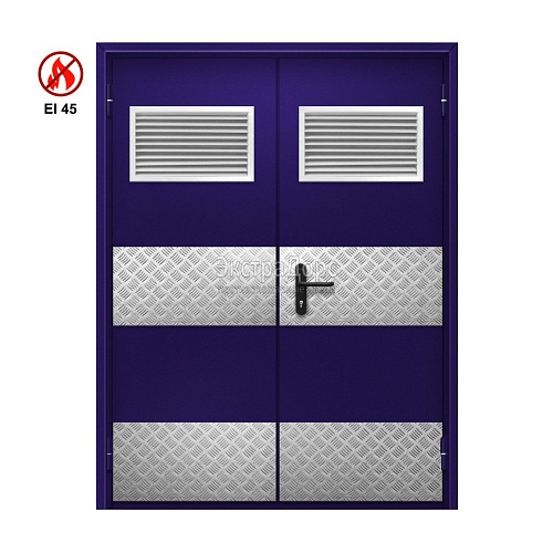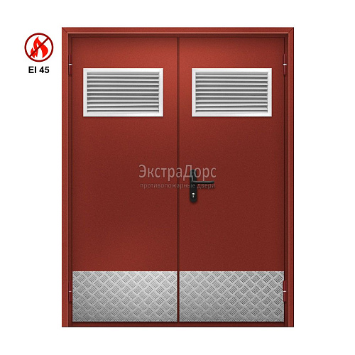 Двупольная огнестойкая дверь EI 45 ДГ-02-EI45 ДП123 двупольная глухая с решеткой