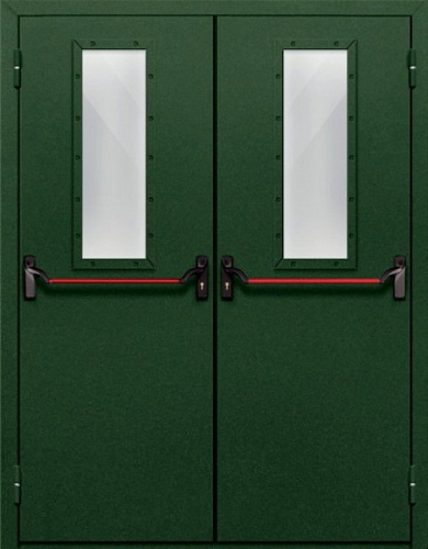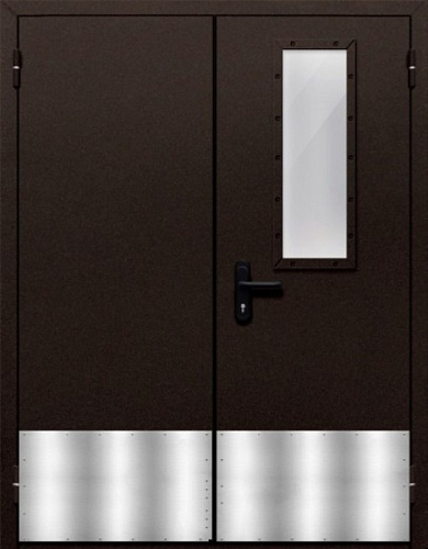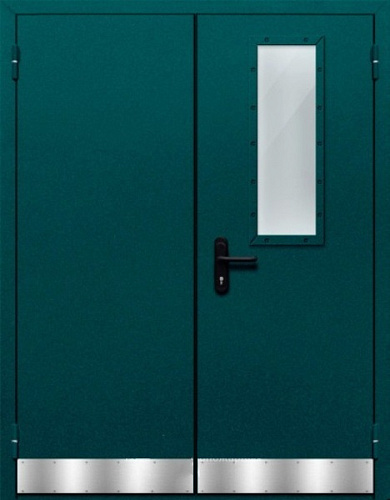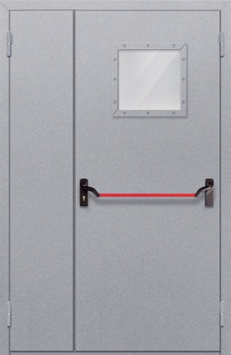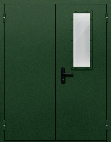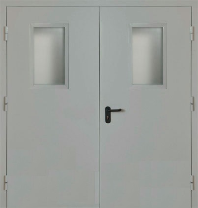 Двупольная огнеупорная дверь EI 60 двустворчатая с выпадающим порогом и стеклом
