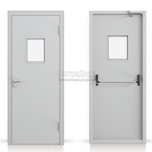 Противопожарная дверь EIW 60 однопольная остекленная с выпадающим порогом и антипаникой