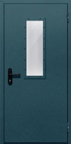 Противопожарная дверь 1 типа синяя c выпадающим порогом с остеклением