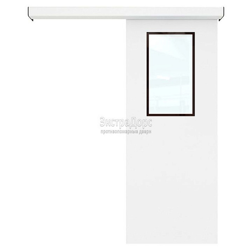 Противопожарная дверь EI 30 раздвижная с выпадающим порогом и остеклением