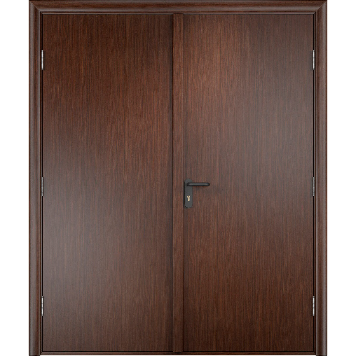 Двупольная огнеупорная дверь ДМП-01-30 двухстворчатая стальная полотно орех