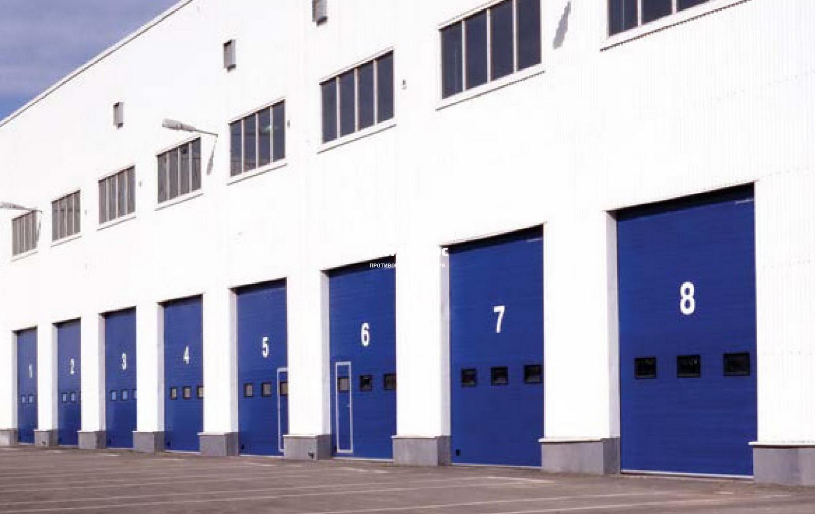 Синие огнеупорные промышленные ворота с окнами в Воскресенске