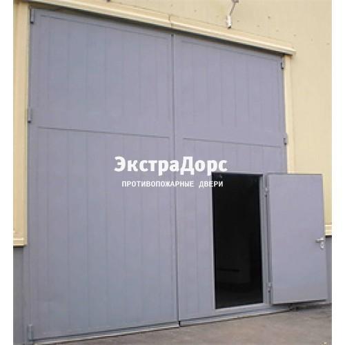 Серые противопожарные распашные ворота с калиткой в Воскресенске