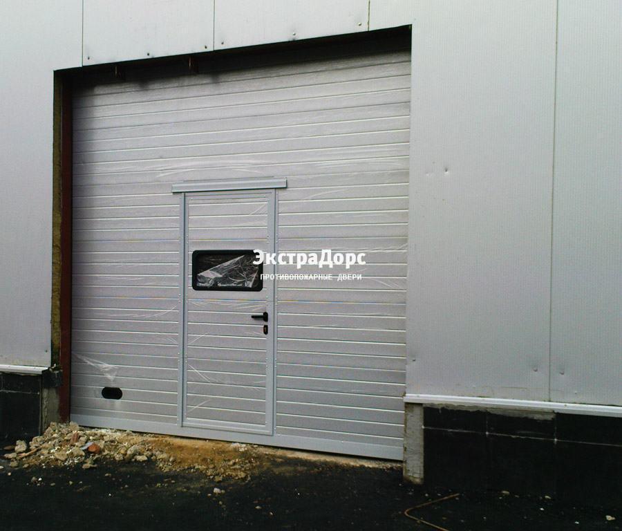 Подъемные противопожарные ворота с окнами и поворотной калиткой