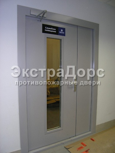 Двухстворчатая противопожарная дверь с прямоугольным стеклом в Воскресенске